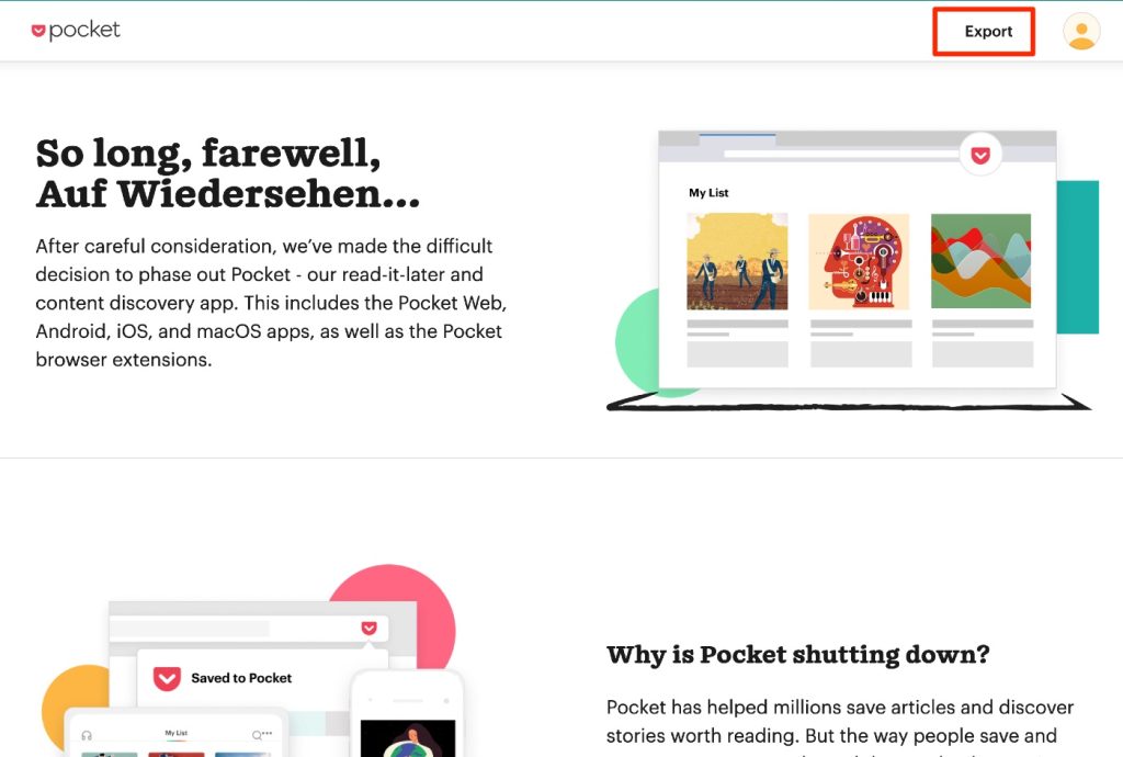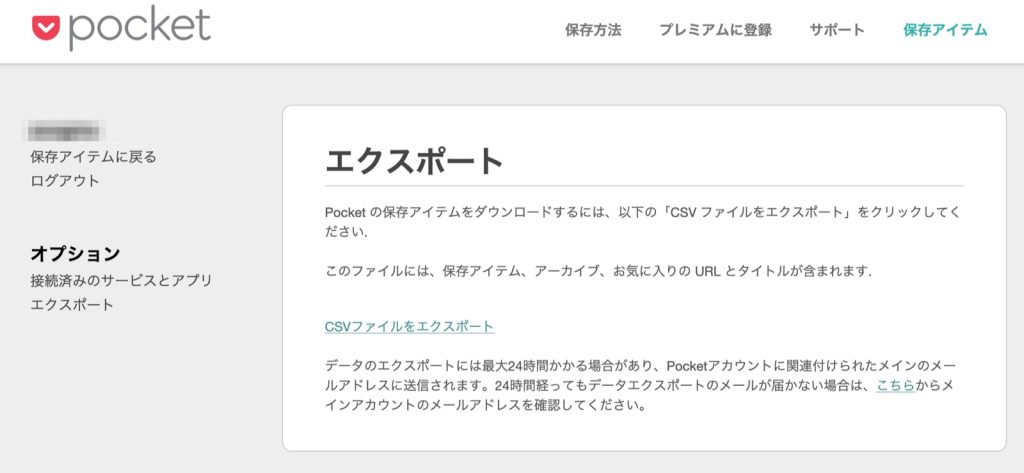 1.Pocketにアクセスすると「Export」というリンクがあるのでクリックします。